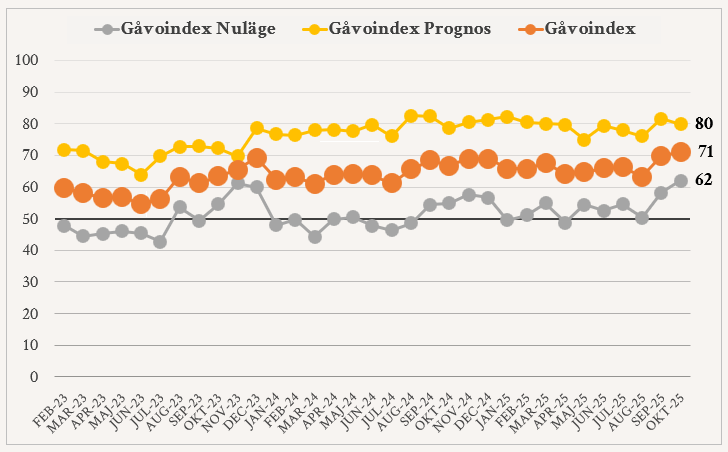 Gåvoindex presenteras varje månad på Giva Sveriges webb.
